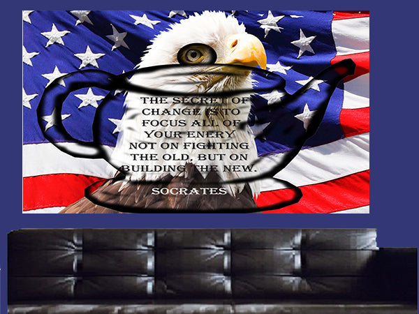 Teapot - US Flag - Eagle - Socrates - Canvas Wall Art - Large One Panel
