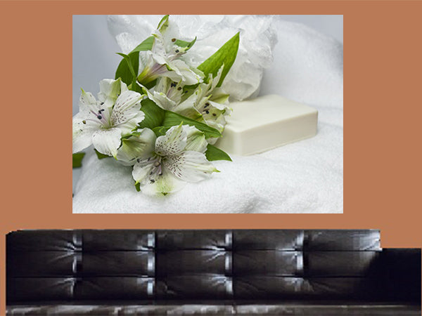 White Orchids Soap Spa Canvas Wall Art - Large One Panel